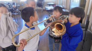3年生の中には、これから金管バンドに入部しようと考えている人もいるでしょう。音楽の授業では、入部を考える際の参考にしてもらうことも含めて、金管楽器にふれ、音出しに挑戦する時間を設けました。 楽器を落とさないように大事にも […]