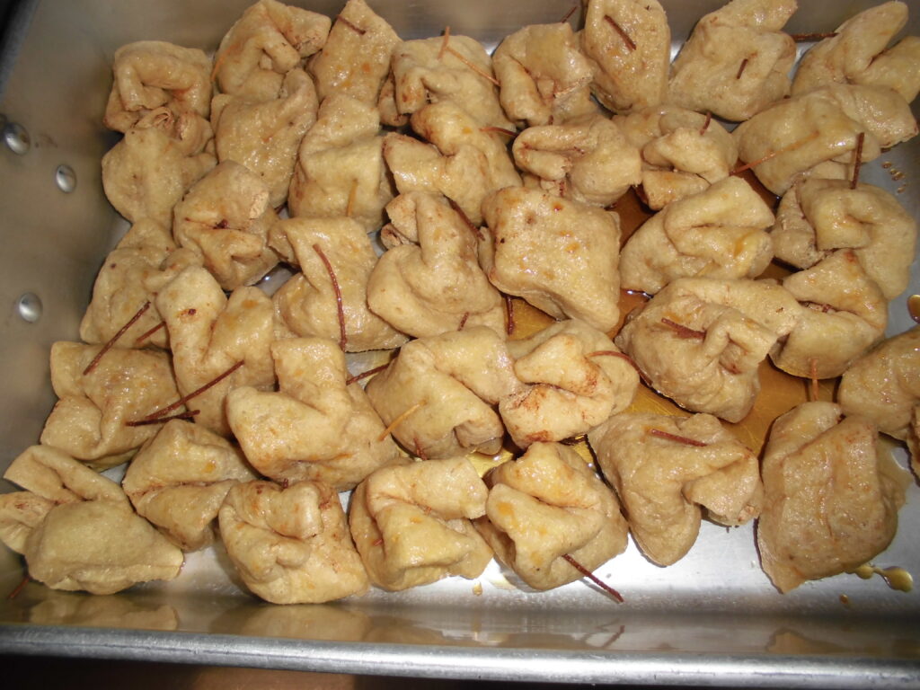 行事で1学年いない日は、いつもよりも手間をかけた給食を出すことができます。子どもたちも分かっていて、〇年生がいないから手間のかかる料理がでるんだね!と嬉しそうに話したり、私たちがいない日に△△△がでるんだ。食べたかったな~と話してくれたりします。この日は、塩尻市の学校給食で人気の「こんこんコロッケ」にしました。コロッケの具をきつねの好きな油揚げに入れて揚げます。油揚げの口を閉じるときに、きつねの顔になるようにスパゲティーでとめます。クラスの食缶には、色々なお顔のきつねがそろいました。