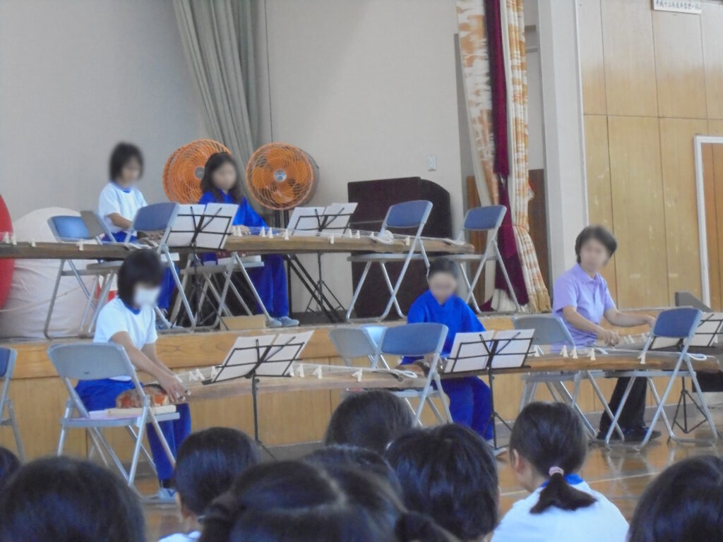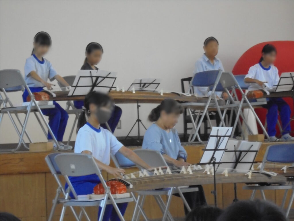 伝統文化に学ぶ「箏」クラブ発表会~練習の成果を全校音楽で披露しました