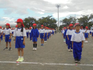 週末に予定されている運動会に向けて、最後の全校練習を行いました。
