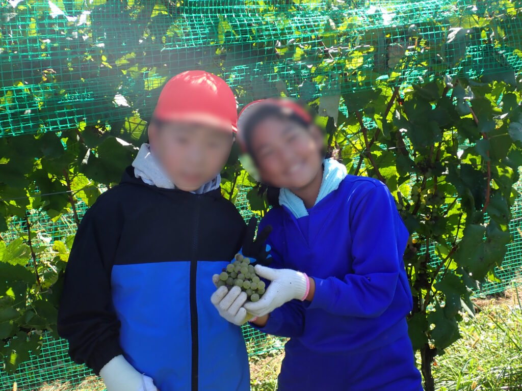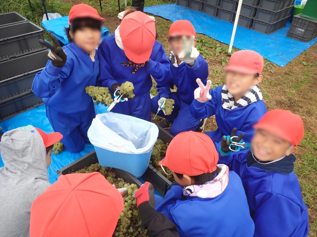 4年生は、みどりの学習の一環として、ワイン用ぶどうの収穫体験学習を行いました。