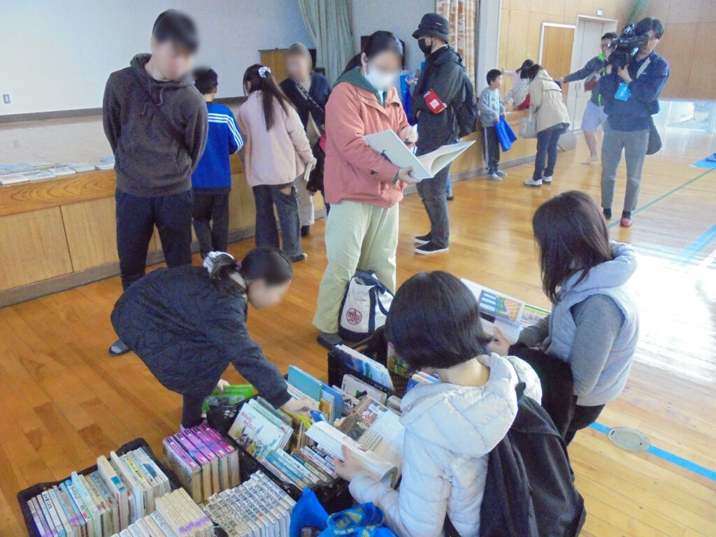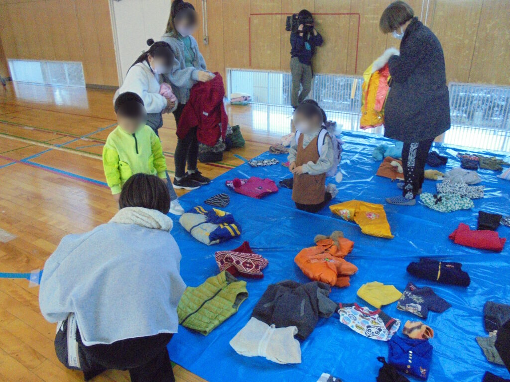 また、あそびの広場が終わった後は、小学校図書館で読み終えた本をリサイクルブックとしてお持ち帰りいただく「リサイクルブック」、子ども服のおさがり会「おさがりリユース会」も開催していただき、こちらの会も大盛況でした。