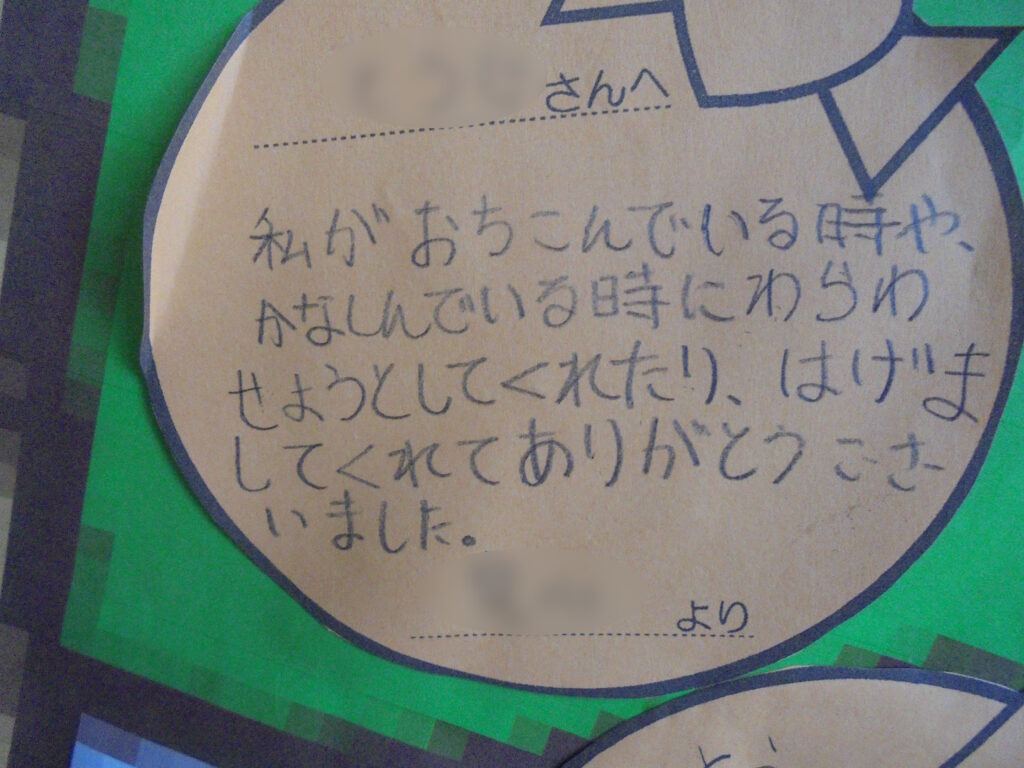 貼りだされたメッセージを読むと、心がほっこりとあたたかくなるものばかりです。