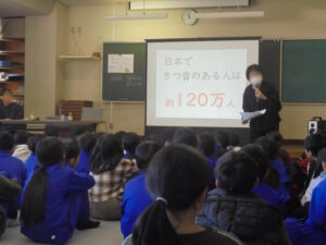 寒さが増してくるこの時期、なかよし学年で一緒に体を動かして、全校で笑顔になろうと、児童会が大なわとび大会を企画しました。