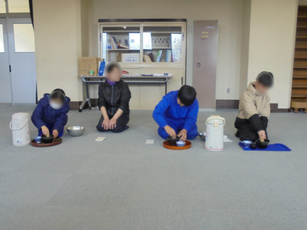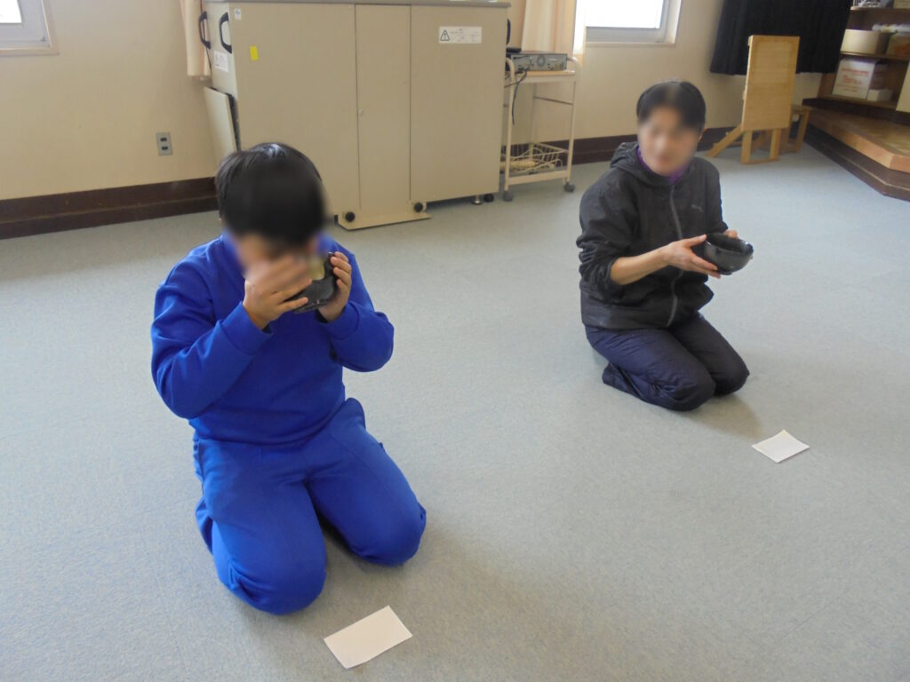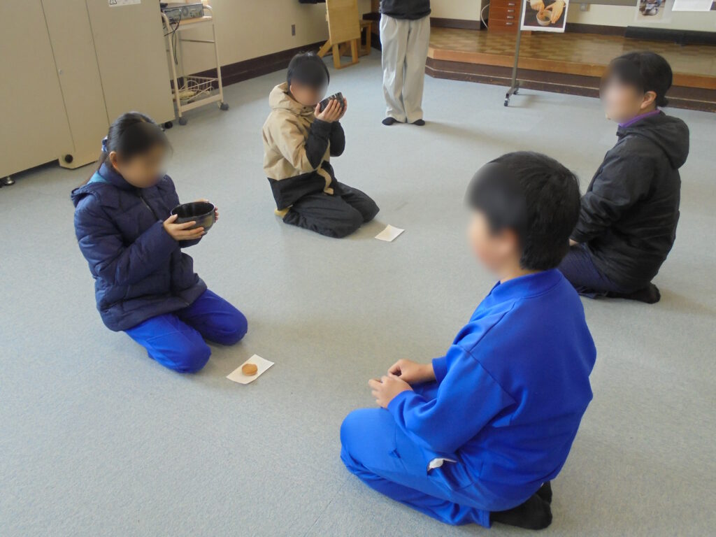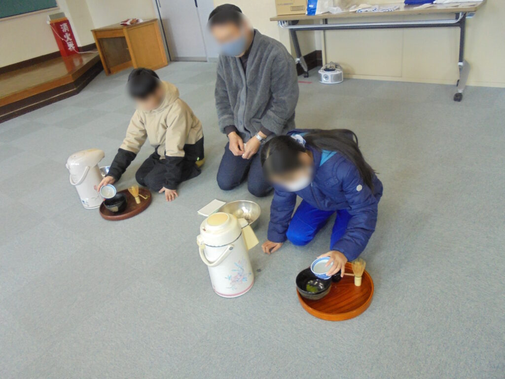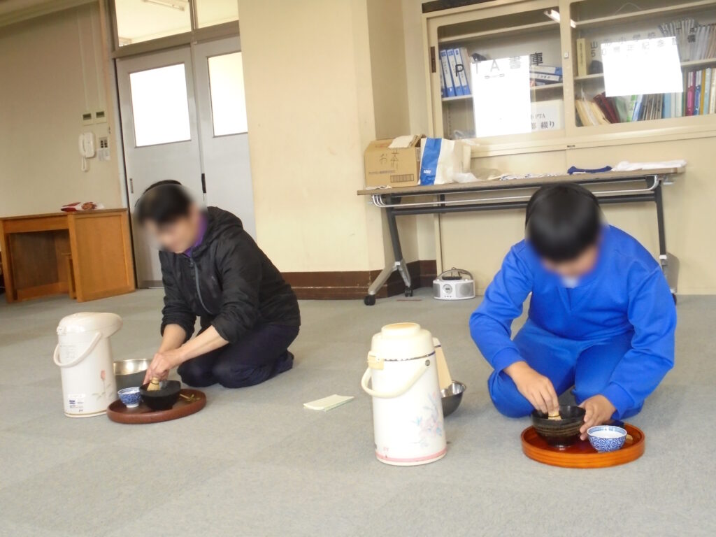 互いが立てたお抹茶を味わった後は、参観の職員にも振舞ってくれました。