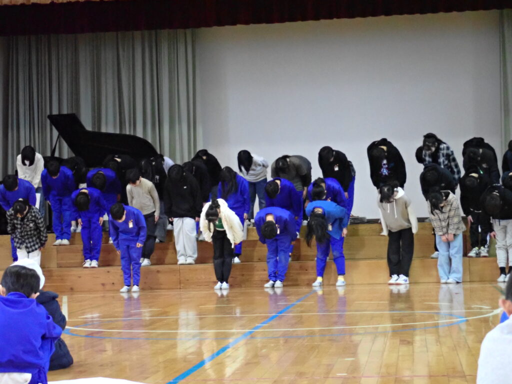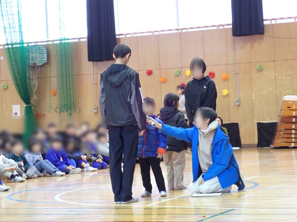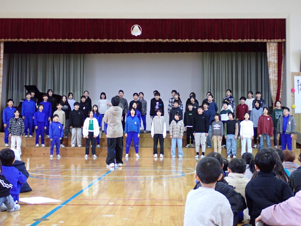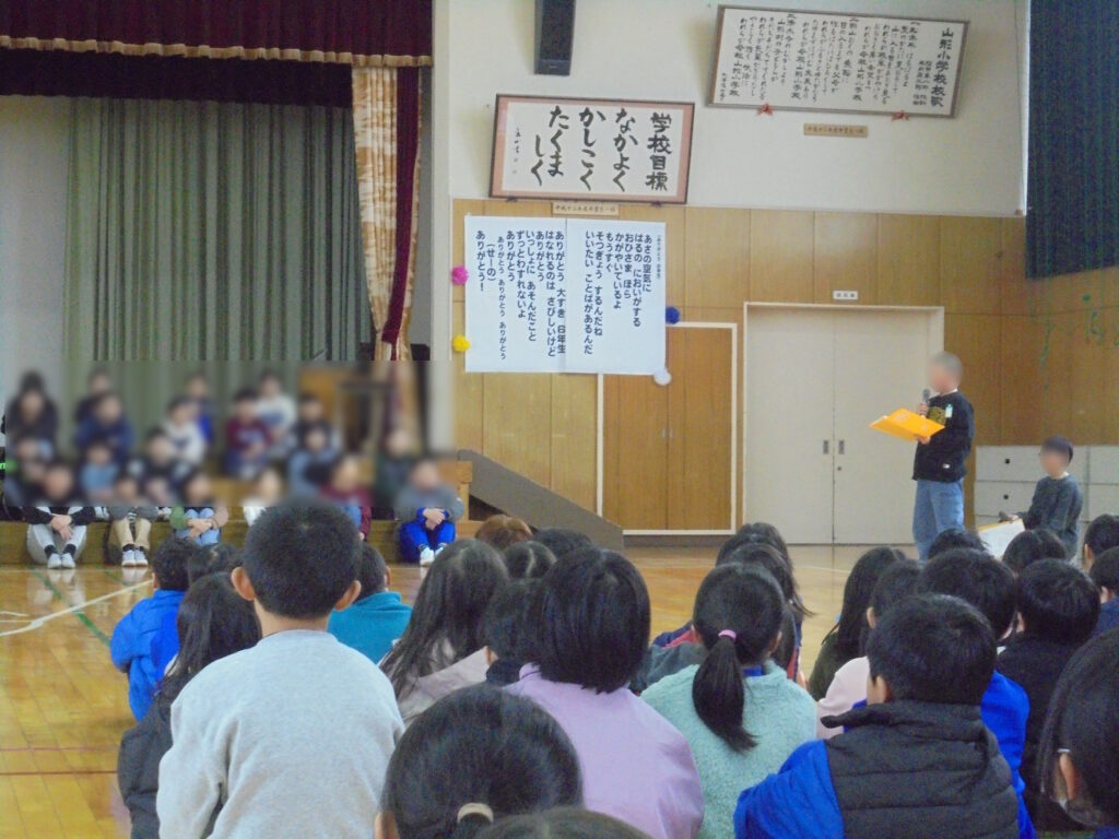 1~5年生は、学年ごとの発表で、これまで山小のリーダーとして全校を導いてきた6年生への「ありがとう」の気持ちを発表しました。