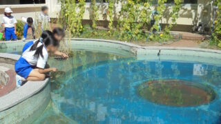 池のある中庭は、子どもたちのお気に入りの居場所です。休み時間のたびにここに来て、鬼ごっこをしたり、池の魚をながめたり、それぞれで楽しんでいます。 今年は春のPTA作業が雨天で中止となり、池の掃除ができなかったため、藻の量 […]