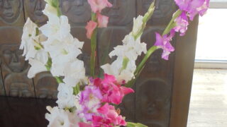 昨年に続いて、今年も保護者の方からきれいなグラジオラスをいただきました。玄関など校内各所に飾らせていただいています。